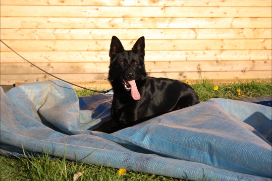 Mittelgroß, mittelkräftig, trocken und fest mit sehr gutem Ausdruck. Guter Widerrist, gerader, fester Rücken, etwas kurze, abschüssige Kruppe, gute Winkelung der Vor-und Hinterhand, gerade Front und Schrittfolge, geräumige Gänge bei gut wirksamen Nachschub. Wesen sicher, TSB ausgeprägt.Besondere Vorzüge: Temperamentvolle, sehr führige und drangvolle Hündin aus gefestigten Leistungslinien.