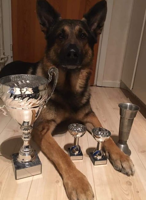Supernase und weltbester Cixo del Lupo Nero gewinnt die Schwedische Meisterschaft „Schäferslaget“ mit 96-92-94 = 282 Punkten SG mit seiner wunderbaren Monica. Wir habenmit gefiebert und sind voller Bewunderung für dieses tolle Team. Im besten Alter, stabil und überzeugend sind wir froh und dankbar, dass Cixo seine Verletzung überstanden hat und nochmal so richtig durchstartet.