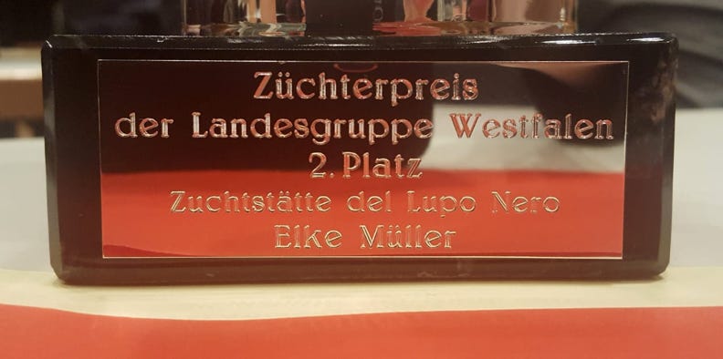 Züchterpreis Westfalen! 2. Platz für „del Lupo Nero“s Saison 2017.