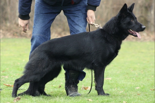 Mittelgroß, mittelkräftig, trocken und fest mit sehr gutem Ausdruck. Guter Widerrist, gerader, fester Rücken, etwas kurze, abschüssige Kruppe, gute Winkelung der Vor-und Hinterhand, gerade Front und Schrittfolge, geräumige Gänge bei gut wirksamen Nachschub. Wesen sicher, TSB ausgeprägt.Besondere Vorzüge: Temperamentvolle, sehr führige und drangvolle Hündin aus gefestigten Leistungslinien.
